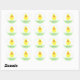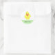 A cute little yellow duck with a big orange beak and a cute expression. A soft green border with white dots.