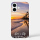 Inspirational beach scene with a beautiful sunset and uplifting quote at the bottom, perfect for daily motivation and phone case aesthetics.