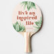 Live an inspired life terracotta and blush retro font quote ping pong paddle with two sided print and custom name and watercolor succulent plants.