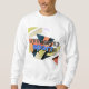 Vibrant and dynamic graphic design featuring a mix of geometric shapes and bold typography. The layout includes overlapping triangles, circles, and polygons.