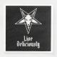 Here's a great horror themed dinner napkin for a party, dinner or Thanksgiving! The napkins feature a stylised Baphomet goat, perhaps Black Philip, with the words "Live Deliciously" on black. Just a nice little reminder to get decadent and feast all you want. It's perfect for a coven gathering or other witchy event! These dinner napkins are also great for a horror themed event, Halloween or a goth event and will make any event more decadent and satanic!
