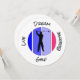 Awesome, fun and inspirational message about how much one really enjoys the sport of golf. Depicts an action golf silhouette poised ready to drive a golf ball. Placed on a multicolored retro disc allowing a golf fan to place a fun message about how one lives this noble game. Be inspired to play your next round on the course.