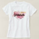 Live In Gratitude shirt with the words in black against a pink and tan swirling ink pattern and the outline of a pink love heart just set behind the text.
