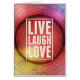 Enjoy this colourful grunge style graphic design entitled Live Laugh Love.