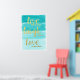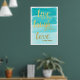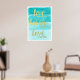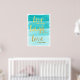 Live every moment, laugh every day, love beyond words in chic gold script on ombre blue background.