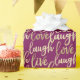 Faux gold lettering pattern 'Live Laugh Love' on a dark magenta background.