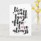 Inspirational greeting card displaying the phrase "Live well, laugh often, love always" in black brush script and a pink heart with an organic ink texture to achieve an authentic, hand lettered look.