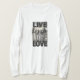 This t-shirt design features the classic mantra "Live / Laugh / Love" stacked vertically, creating a visually interesting textured grid-like effect. The simple yet powerful message, combined with the unique layout, makes this design both stylish and inspirational.
