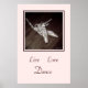 This pretty poster features an image of an elegant pair of toe shoes with ribbons resting against the wooden floor of a dance studio. It encourages you to "Live, Love & Dance". Perfect for any dancer or ballet enthusiast!