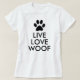 Live Love Woof. Parody / Spoof of Live Love Laugh. Cat lover saying Dog / quote. This is also available on dark shirts with a white paw print.