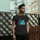 Fun t-shirt graphic for musicians and music lovers features "Live Music" aqua neon text with a pink and aqua guitar outline.