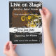 Create your own music event or band gig flyer by editing the text on both sides of this flyer with yellow and white floral grunge with dark floral background! Change the font style, font colours and sizes with the editor! Add or delete text, add directions or any information you want! Perfect for any band or musician to promote their concert! Music promotion flyers!