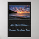 Poster shown with a photo print of a beautiful beach sunset. Poster background is a deep charcoal colour.