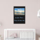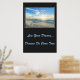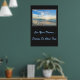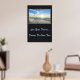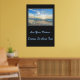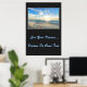 Poster shown with a photo print of a beautiful beach sunset. Poster background is a deep charcoal colour.