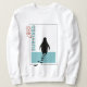 Warming pullover has the famous survived penguin that didn't follow the group.