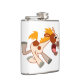Well made flask, a little better than I had expected. Flask came in clear plastic box which gave it a nice presentation when I took it out of the zazzle packaging. Image is not printed on flask but on sticker. Don't know how this will hold up I haven't used it yet. This would make a Great gift! I plan to purchase more for friends! Cheers. I thought a little brighter than computer. Very crisp, writing wasn't