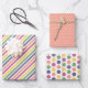 Bring cheerful energy to any gift featuring a vibrant pink, green, yellow, orange and blue patterned designs. This modern combination includes a diagonal striped pattern, a polka dot pattern of pink, green, yellow, orang and blue and a solid color pattern with several color options available. This set will add fun and a colorful touch to any birthday, celebration, holiday, or everyday gifting. The clean white spacing between each stripe keeps the look fresh, playful, and versatile for all ages. Perfect for wrapping presents, crafting projects, party décor, or adding a pop of color to your packaging. Tie any matching bow or ribbon for a finished look.