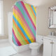 Colourful striped shower curtain designed with various shades of yellows, orange, greens, lavender and blue. Can be used as window curtains too.
