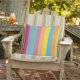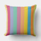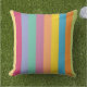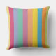 Colourful striped throw pillow designed with various shades of yellows, orange, greens, lavender and blue.