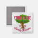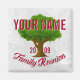 Celebrate family with this contemporary healthy vibrant green tree with brown bark and dark red lettering. Perfect for your summer cookout or travel getaway family reunion!