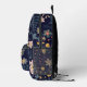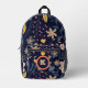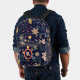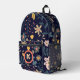 Lively Whimsical Flowers and Leaves on Navy Blue Printed Backpack