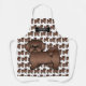 Destei's original cartoon illustration of a cute liver / brown colour Shih Tzu breed dog. The dog design is placed as a pattern on the background of the apron as well as a larger size on the bottom. The top has a black dog bone silhouette together with a personalizable text area for a name.