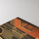 A stretched print that channels the energy of the Art Deco movement by using contrasting colours and dynamic patterns to create a visually striking backdrop that pays homage to the glamour and excitement of the roaring twenties.