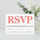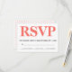 Living coral and white typography geometric wedding RSVP response card. The back includes a coral and white geometric pattern.