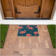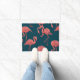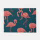 Vector pattern with hand drawn flamingos in living coral colour on dark blue background.