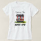 A t-shirt with a beach house with tropical plants watercolor style, with the funny quote, "Living on Beach Time." Ai art. generativecontent