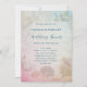 Living seas wedding shower / engagement party invitation for the couple. Sea life design with dark blue text templates. Sea turtles, seashells and coral are part of the intricate background. The marine life theme is perfect for celebrating an ocean loving couple. The "wedding shower" text has some extra glyphs, and if you change the wording, they will disappear. Reverse is solid, sand tan colour.
