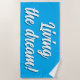 Living the dream custom color beach towel with quote. Cool towel with inspirational quote. Bold typography design with script sign letters. Summer gifts for colleague, coworker, corporate employee, boss, staff, personnel, business owner, friends, family, wife, husband, grandpa etc. Also fun for Christmas or Birthday! Great for sports, beach, sailing, boating, pool and more.