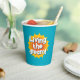 Living the dream! fun paper party cups for party. Cute design with inspirational quote. Vintage typography with red hot sun logo. Unique paper cups for BBQ, celebration, retirement and more.
