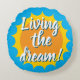 Living the dream round sunshine pillow cushion. Cool cushion with inspirational quote. Script typography design with sun rays. Unique gifts for successful colleague, coworker, corporate employee, boss, staff, personnel, business owner, friends, family, wife, husband, grandpa etc. Double sided print.