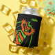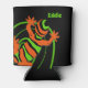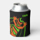 Colourful lizard print personalised can cooler. Black can cooler with a bright orange and green gecko lizard design. Add your own name to customise (or delete the text if not required).