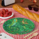 Set of eight 9” paper plates with an image of gorgeous green batik featuring a variety of lizards on lush green foliage. See matching flask and coasters. See the entire Bali Retreat Plate collection in the FOOD/BEV | Dishes section.