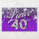 Liza's 40th Birthday Silver Glitter Purple Sparkling Wine Label