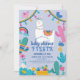 This cute boy baby shower fiesta invitation features a light blue background with a llama/alpaca, birds, cactus, rainbow, mountains, and flowers. The reverse side features a blue background with floral patterns. Personalise it for your needs. You can find matching products at my store.