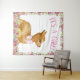 Llama baby shower backdrop banner with adorable watercolor baby girl llama with pretty pink bow on a watercolor floral background. This llama baby shower banner backdrop is easily customised with the text of your choice.