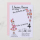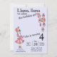 Llama, llama, we adore this birthday girl who is turning 4, lavendar, orange and purple llama themed four year old birthday invitation