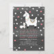 A baby shower invitation featuring an illustration of a mother and baby llama with pink and white polka dots over a grey watercolor inspired background. Personalise the pink and white text.