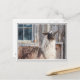 Llama in front of a barn postcard