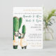 This front-and-back printed llama-themed invitation is perfect for a baby shower at any time of the year! The front side of the invitation features 2 adorable llamas and a cactus. The back side features several funny llamas, succulents and cacti. The colour scheme is modern, simple greens and gold.