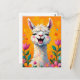 Brighten up your space with this vibrant and joyful llama illustration! Featuring a cheerful white llama with rosy cheeks and a wide, toothy grin, this whimsical artwork is set against a sunny orange background bursting with colourful flowers. Pink tulips, cheerful daisies, and leafy greenery frame the happy llama, creating a heartwarming and playful vibe that’s sure to make anyone smile. The painterly texture and bold colours bring the scene to life.