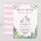 Llama Pink Green Cactus Succulent Girl Baby Shower Invitation