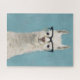 This puzzle was adorable. It was given to an adult who loves Great Pyrenees. It wasn't a quick puzzle to assemble because of all the white, but he had fun doing it. The quality of this puzzle was excellent.