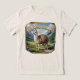 This combination of photographic and painterly imagery captures a llama wearing a massive, perfectly rounded armadillo shell covering its back and rear. With its right foreleg lifted off the ground and mouth open in a surprised bellow, the hybrid creature’s eyes express a sense of wonder and joy. Above the llama, the word "LLAMADILLO" arcs dramatically in a bold, dimensional gold font with a slight 3D edge. The background showcases a lush, vibrant meadow leading to rolling green mountains under a bright, slightly hazy sky, creating a playful and fantastical scene. This item is ideal for those who love funny animals, funny animal pictures, humour, comedy, comical animals, llamas, armadillos, funny jokes, funny memes, fantasy art, fantasy animals, strange animals, mysterious animals, creative art, imaginative art, surreal art, offbeat humour, dream art, crazy designs, parody and spoofs. This is one of a series of Combo Creatures on Zazzle.