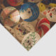 Beautiful tissue paper with an Asian flair. Dramatic photographic image features a stall of colourful Japanese oil paper and bamboo parasols / umbrellas illuminated against dark night sky.