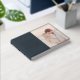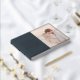 This elegant wedding guest book features a soft, romantic design with a split layout combining a dark navy cover and a warm-toned photo area. The typography is stylish and modern, adding a touch of sophistication to the overall look. With its gentle color palette and intimate mood, this guest book captures the essence of love and celebration, making it perfect for commemorating special moments at your wedding. It invites guests to leave heartfelt messages in a setting that feels both personal and timeless.