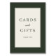 This elegant tabletop sign features a minimalist design with a sophisticated color palette of dark green and cream. The typography is classic and refined, creating an understated yet timeless look perfect for wedding decor. With the phrase "Cards and Gifts Thank You" prominently displayed, it conveys gratitude in a subtle manner, making it ideal for expressing appreciation to guests at your special event. Its simple yet stylish appearance ensures it complements any wedding theme while maintaining a focus on heartfelt thanks.